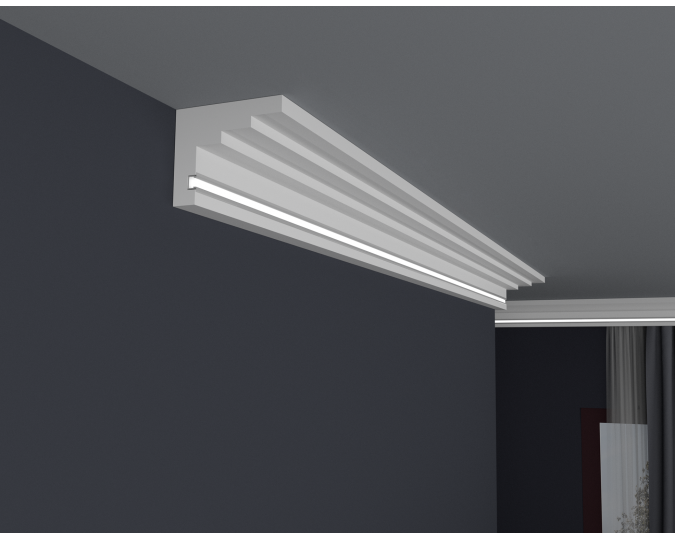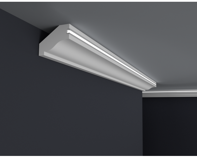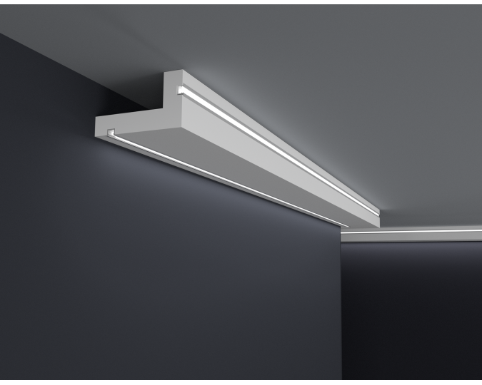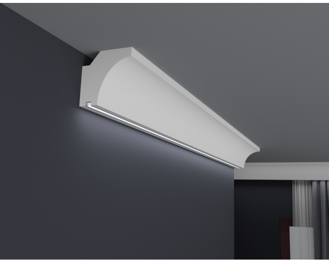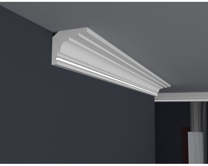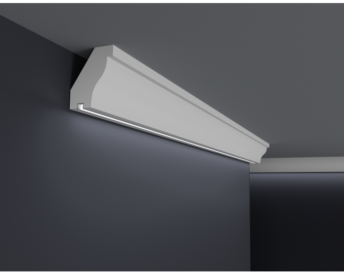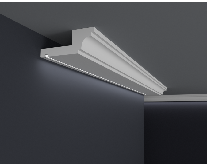 Die LED-Leisten, die Sie in unserem Shop kaufen, sollten auf der Innenseite mit selbstklebendem Aluminiumband gesichert werden. Dies soll verhindern, dass Licht durch das Gesims dringt sowie das Licht in den Raum reflektiert wird.