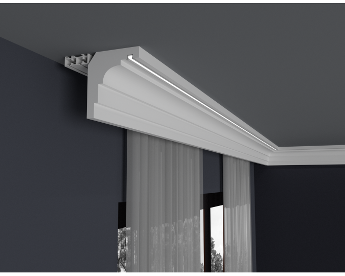 - In unserem Shop können Sie ausschließlich Deckengesimse kaufen. Vorhangschienen müssen separat gekauft werden.