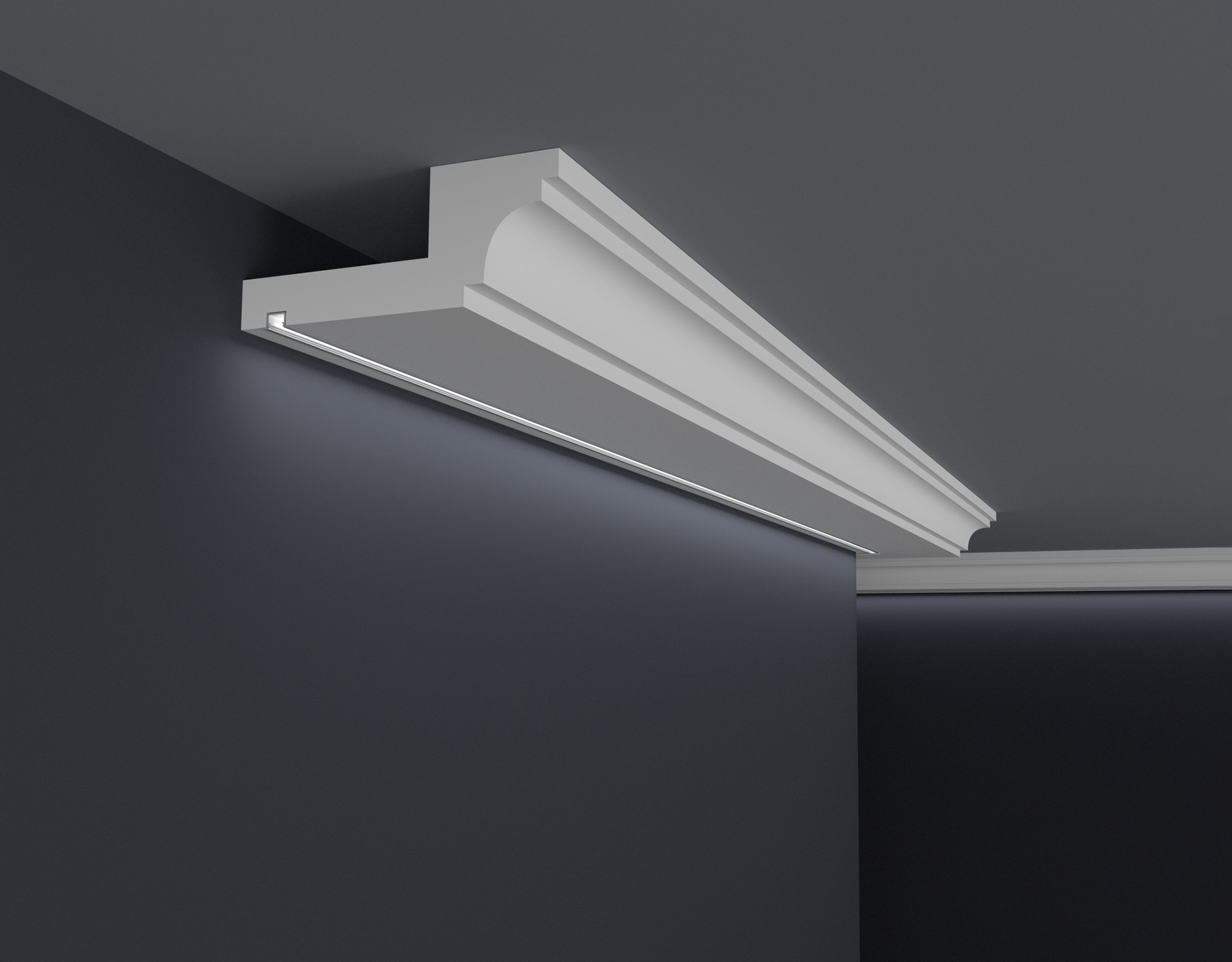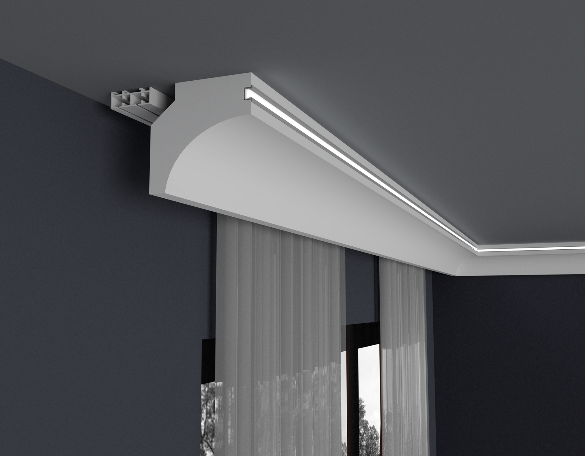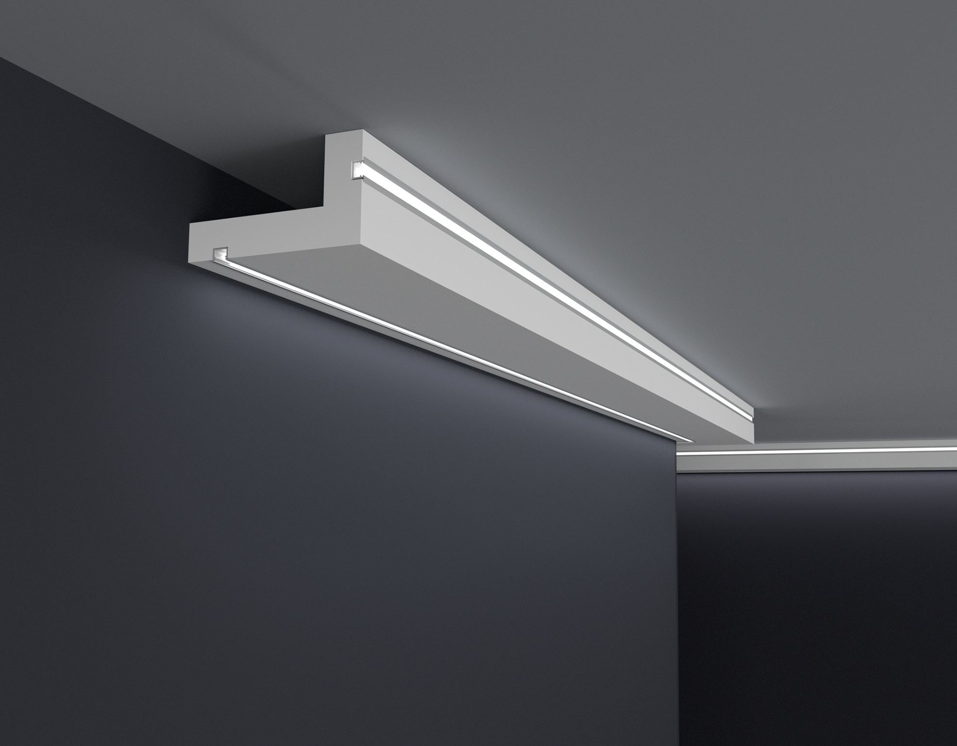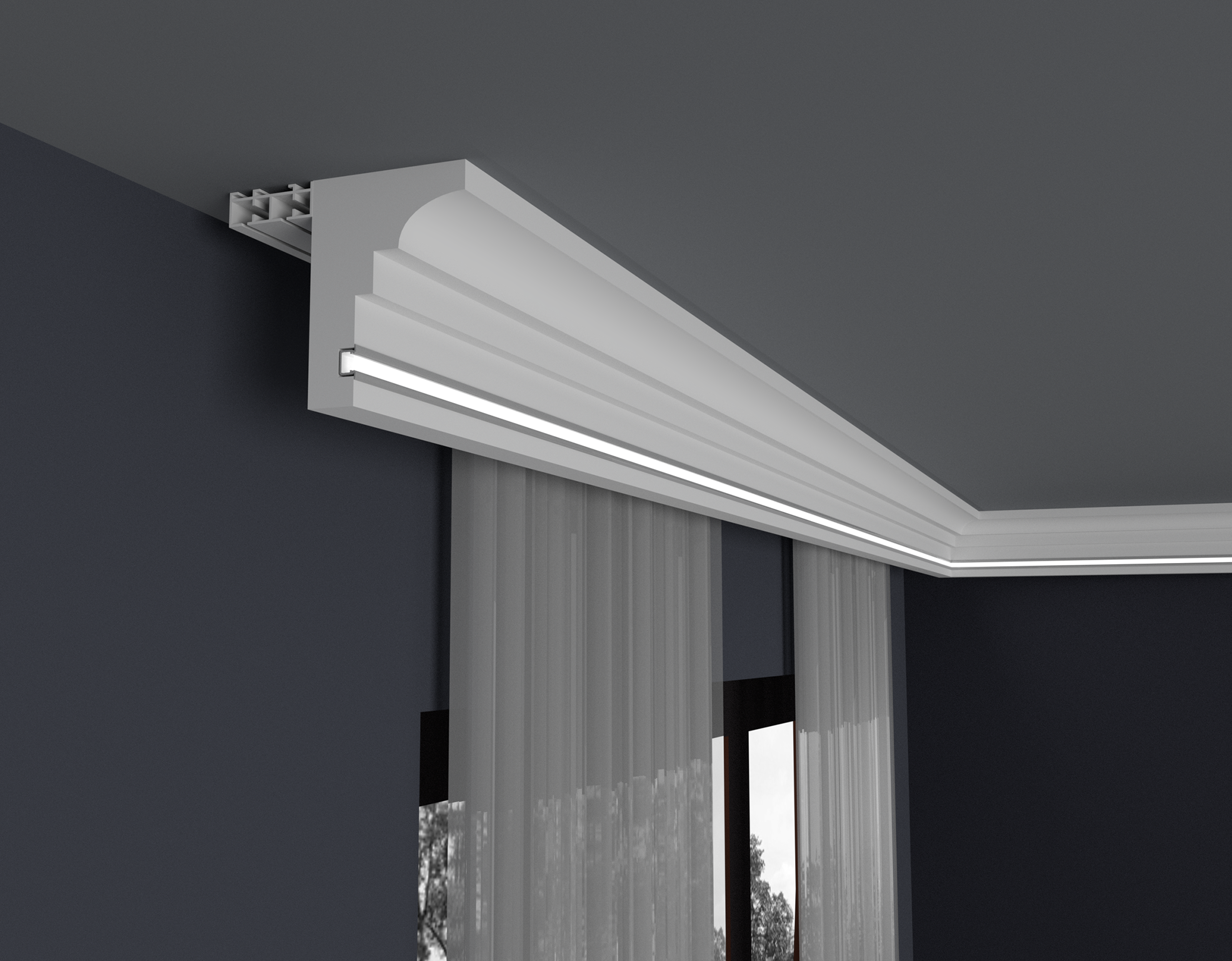 In dieser Kategorie finden Sie dekorative Deckenstreifen, die im Set mit einem passenden PVC-Profil verkauft werden und eine LED-Außenbeleuchtung ermöglichen.