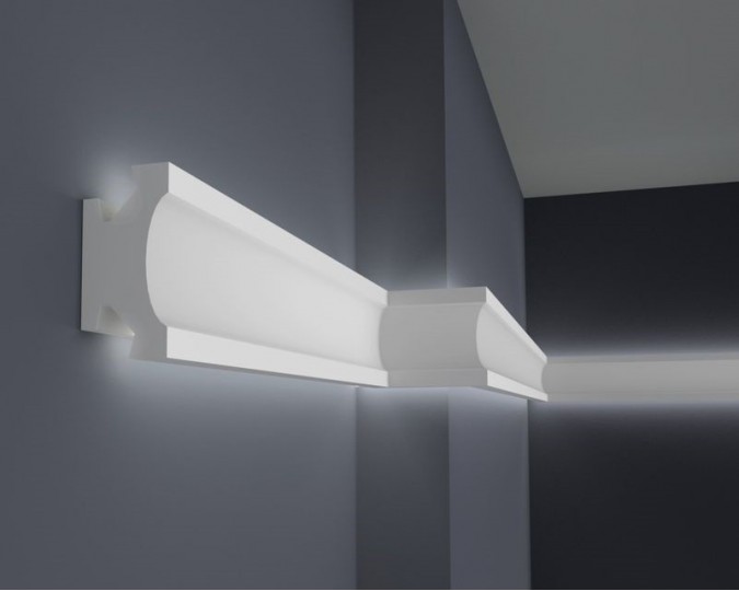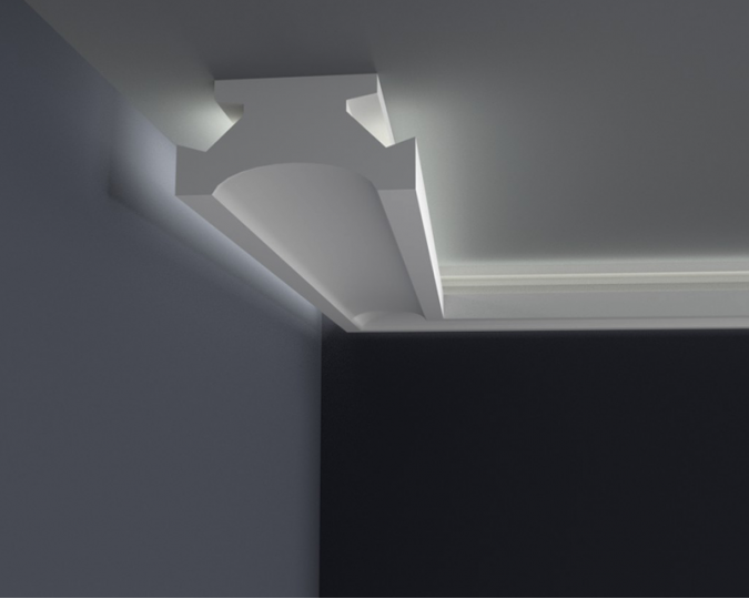 Die LED-Leisten, die Sie in unserem Shop kaufen, sollten auf der Innenseite mit selbstklebendem Aluminiumband gesichert werden. Dies soll verhindern, dass Licht durch das Gesims dringt sowie das Licht in den Raum reflektiert wird.