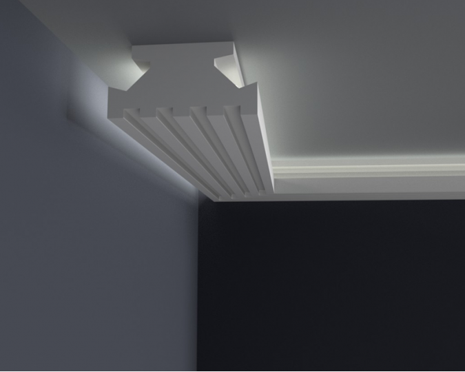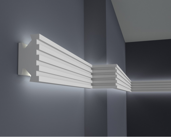 Die LED-Leisten, die Sie in unserem Shop kaufen, sollten auf der Innenseite mit selbstklebendem Aluminiumband gesichert werden. Dies soll verhindern, dass Licht durch das Gesims dringt sowie das Licht in den Raum reflektiert wird.