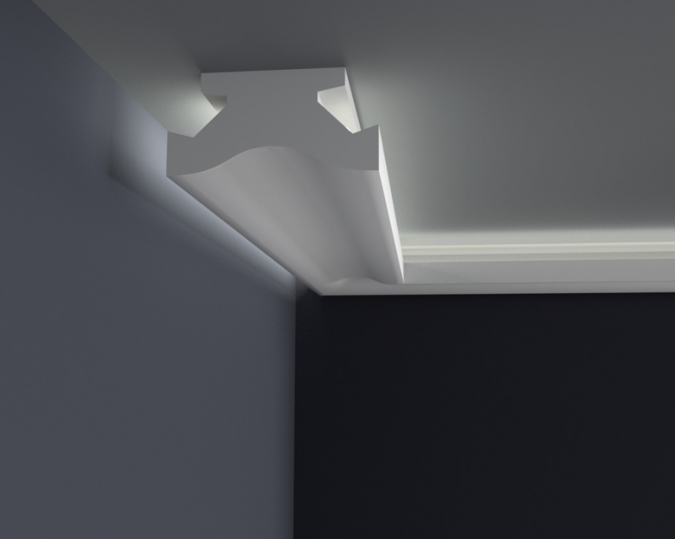 Die LED-Leisten, die Sie in unserem Shop kaufen, sollten auf der Innenseite mit selbstklebendem Aluminiumband gesichert werden. Dies soll verhindern, dass Licht durch das Gesims dringt sowie das Licht in den Raum reflektiert wird.